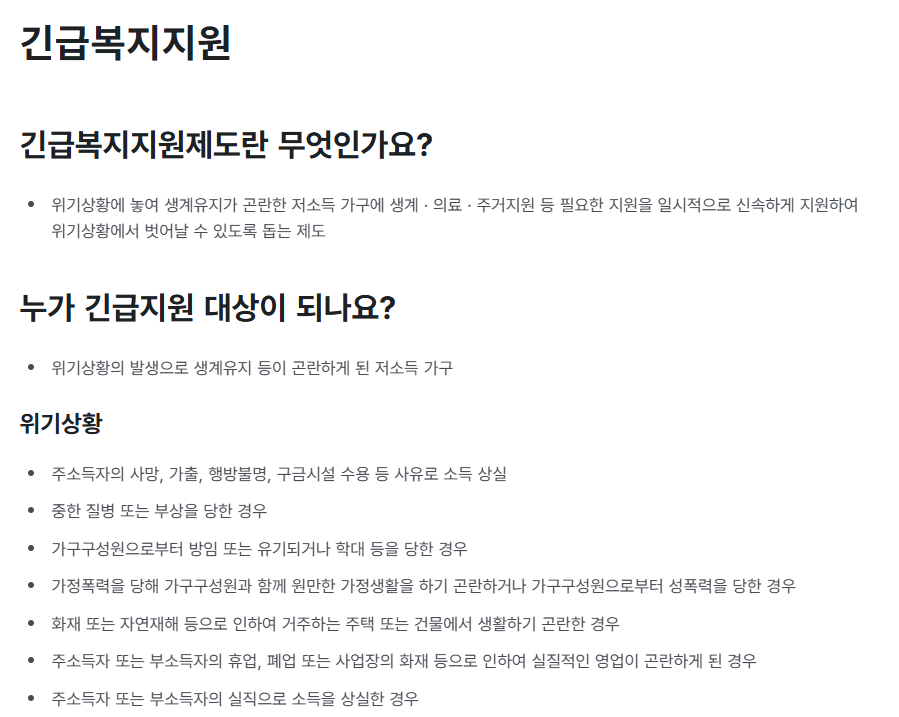 긴급복지지원제도는 주소득자의 사망, 실직, 화재·재해 등 위기상황 발생 시 생계·의료·주거지원을 긴급하게 제공합니다.