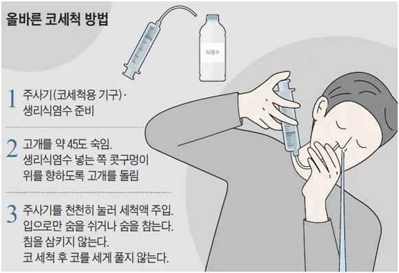 하루 2~3회 꾸준히 하면 점막 부종이 줄고, 먼지나 알레르기 원인을 씻어낼 수 있습니다.