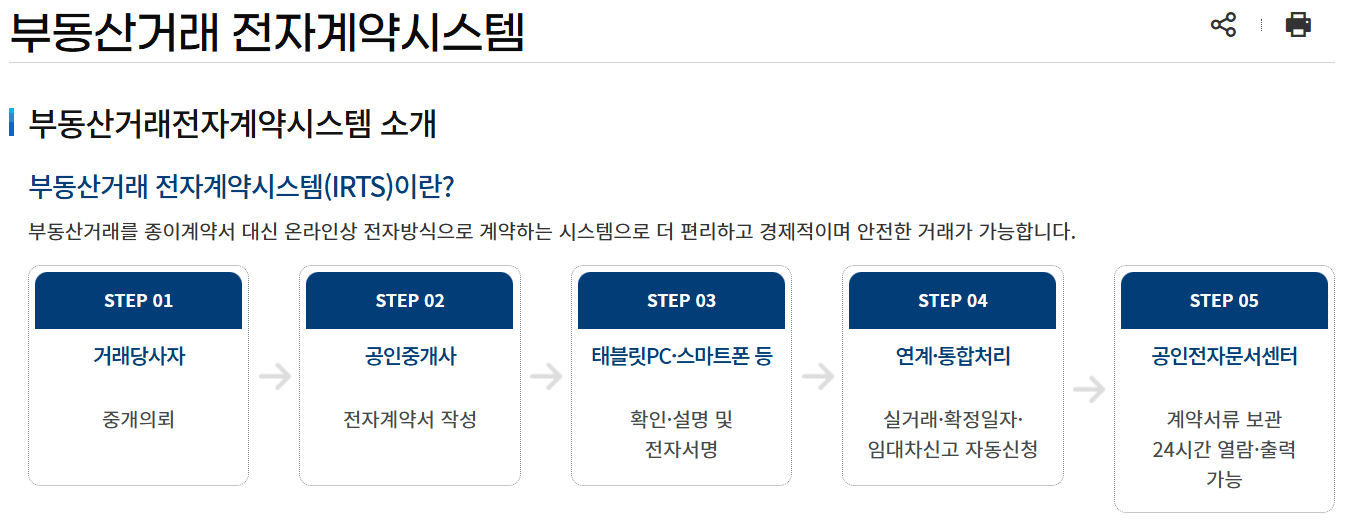 전자계약의 법적 효력은 「전자문서 및 전자거래 기본법」 제4조에 의해 보장되며, 실제 종이 계약서와 동일한 효력을 갖습니다. 시스템 접속은 국토교통부 공식 사이트에서 가능하며, 중개업소는 별도 인증 절차를 통해 등록할 수 있습니다.