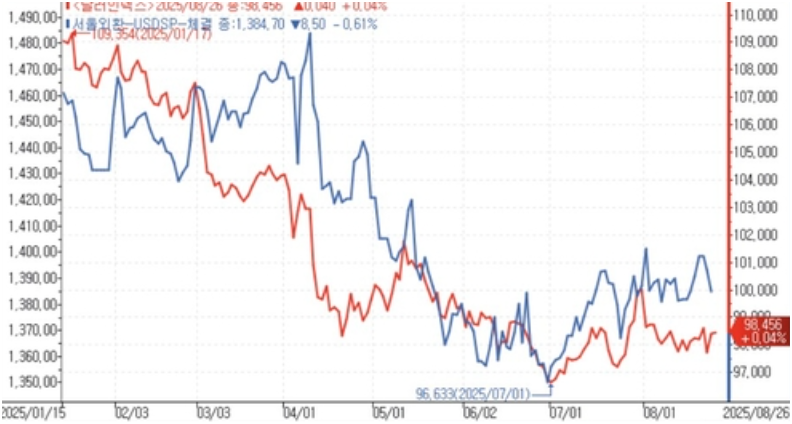 달러 인덱스가 움직이면 한국 원·달러 환율, 금리, 비트코인 가격까지 연쇄적으로 영향을 받습니다. 달러가 강세일수록 외국인 자금이 이탈하고, 코스피와 원화는 약세를 보입니다. 반대로 달러 약세 구간에서는 외국인 매수가 유입되어 국내 증시와 코인이 동반 상승하는 경향이 있습니다.