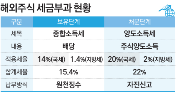 해외주식 세금은 양도소득세 22%, 비과세 한도 250만 원