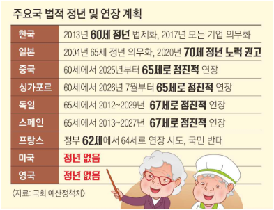 이처럼 정년 연장 논의는 단순히 오래 일하자는 차원이 아니라 인구 구조 변화, 노동시장 안정성, 연금 제도 조정 등 여러 요소가 자연스럽게 이어진 결과라고 볼 수 있습니다.