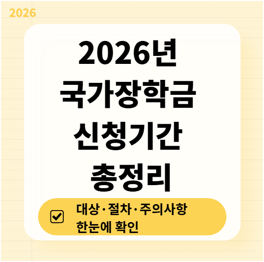 2026년 국가장학금 신청이 곧 시작되면서 대학생과 학부모들의 관심이 매우 높아지고 있습니다. 특히 1차 신청은 재학생에게 의무에 가깝기 때문에, 신청기간을 놓치지 않는 것이 무엇보다 중요합니다. 이 글에서는 2026학년도 국가장학금 신청기간·대상·지원금액·신청절차·주의사항을 모두 정리해, 처음 신청하는 학생도 문제 없이 완료할 수 있도록 작성했습니다.
