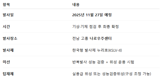 일정은 기상·탑재체·기술 점검에 따라 조정될 수 있음