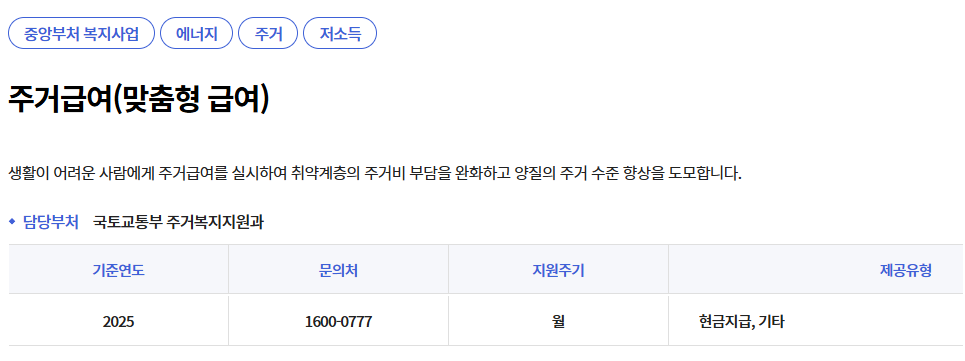 2025 주거급여 지원금액 핵심 정리