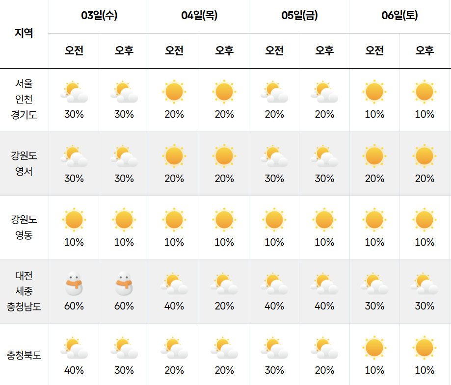 ✔ 1-2. 12월 3일 지역별 날씨 전망