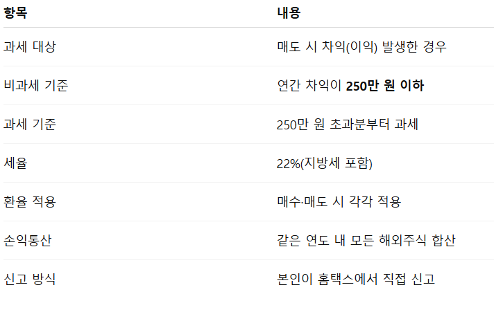 📌 [표 1] 미국주식 양도세 한눈에 정리