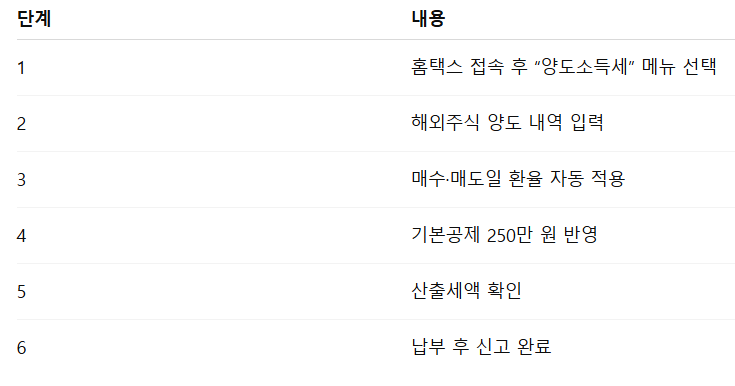 📌 [표 2] 미국주식 양도세 신고 절차 요약