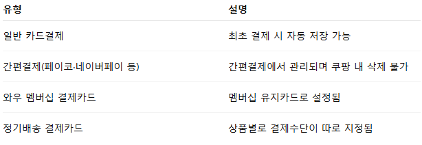 다음 결제 방식은 쿠팡에서 삭제할 수 없습니다: