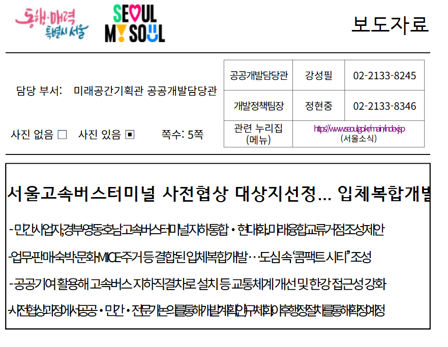 서울시는 이번 고속터미널 부지의 복합개발 계획을 공식 발표했으며, 관련 내용은 서울시 보도자료에서 확인할 수 있습니다.