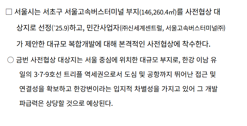 서울고속버스터미널은 오랜 기간 복합개발 필요성이 지속적으로 제기된 핵심 입지입니다.