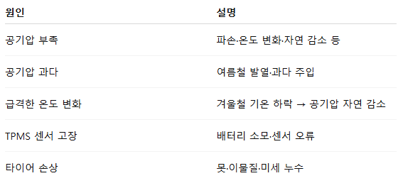 3. 타이어 공기압 경고등이 자주 켜지는 이유(상세 분석)