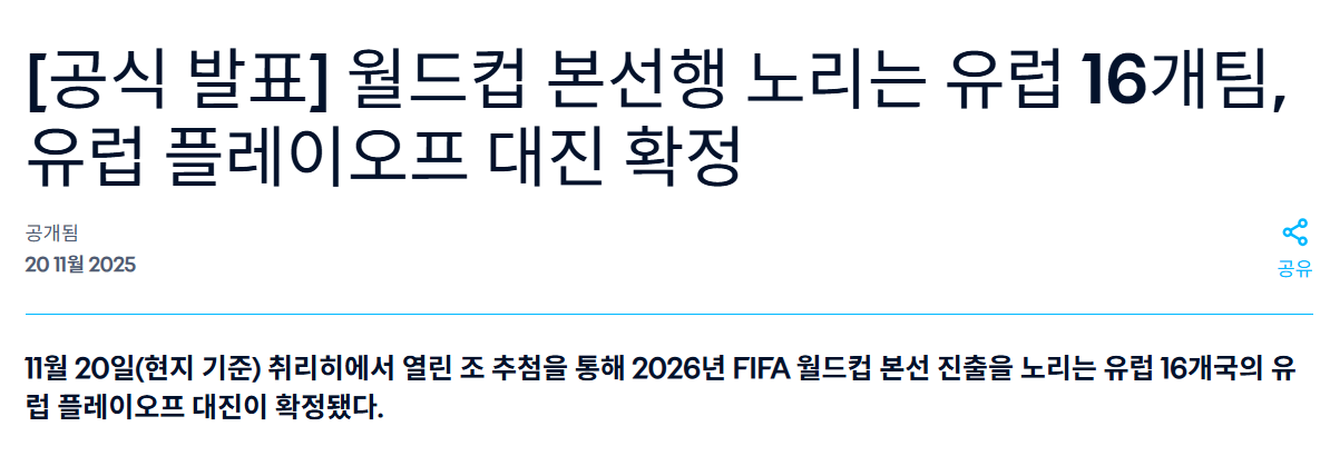 유럽 플레이오프는 2026년 본선에 진출할 마지막 남은 티켓 4장을 배정하는 매우 중요한 경기이며,