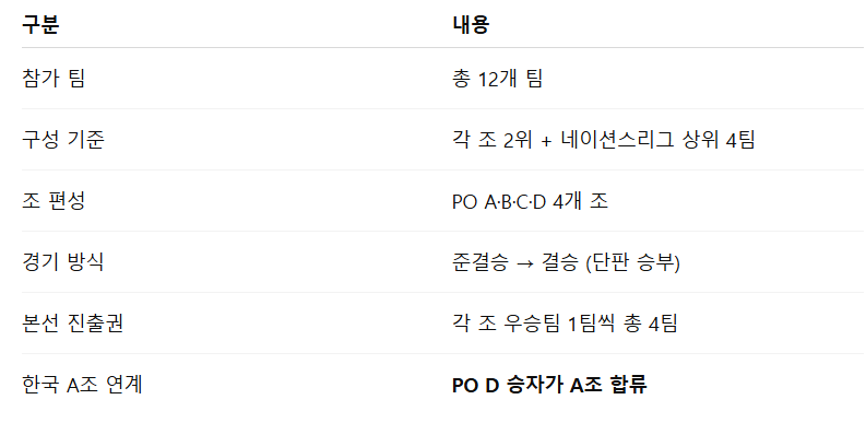 경기 일정과 방식, 대진 흐름을 정확히 파악하면 한국 A조의 경쟁 구도를 더욱 명확히 이해할 수 있습니다.